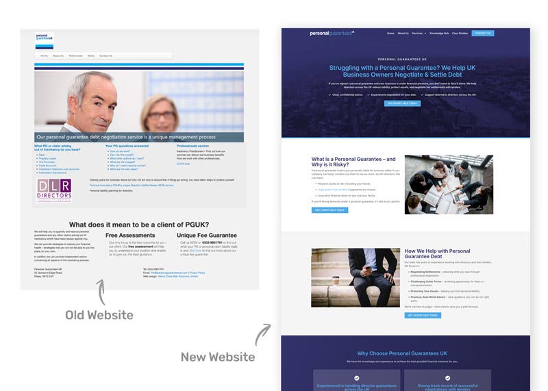 - The new website began ranking on page one of Google for important terms such as “personal guarantee help”.